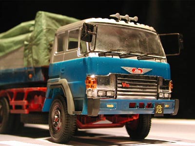 | 牽引車部分のリアビュー。 | 照明を消してストロボ撮影するとこんな画像に。 |