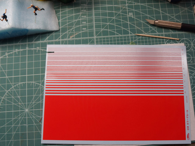| 胸の赤ラインは0.4mm、ソックスの赤ラインは0.3mmデカールです。 こういったポイントに精度が出ているとキラリと光ります。 |