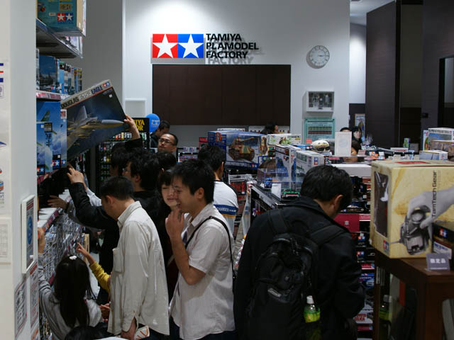 | 店内はタミヤ製品のみ。塗料や工具もすべて揃っているメーカだから出来るんですね。 |
