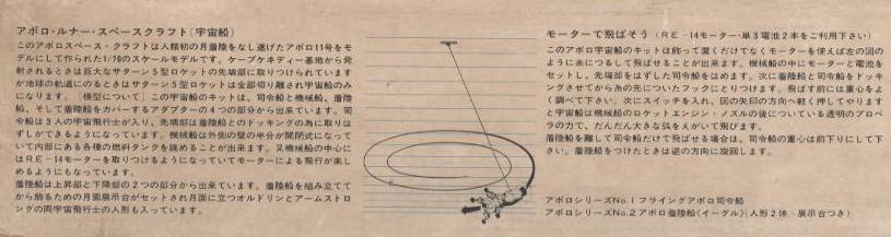 | 司令船はモーターライズ。1の図はアポロ13の映画を思い出す。 | これが苦心の「見えない」透明プロペラ。 |
