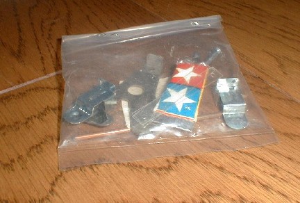 | 左の半球体は天井からの吊り下げ部。右の円はNASAバッチに。 | 着陸船の脚部品。完成後も折り畳みが出来る。 |