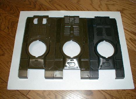 左:「自動変速装置」付の初代第T世代。 中:金型改修の第U世代。 下:第V世代。成形色の違いが良く解る。 |