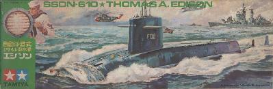 | お待たせしました。「アメリカミサイル潜水艦シリーズ」の登場です。正式シリーズ名称は殆どの方がご存じないのでは?所謂「100円の潜水艦シリーズ」です。 初版は以外に古く、旧ロゴ時代(黒丸マークがあるので、当研究室での厳密な分類では中期ロゴ旧です)までさかのぼります。エジソン、グレイバック、ハリバット、ワシントンの4つがほぼ同時に発売となりました。その後、年を経るに従って微妙な改修を受け、大きく分けて3種類の世代があります。 すべての世代に共通しているのは「自動浮潜」ギミックです。自重で沈み始めると、水の抵抗でレーダーに連動した潜行舵の向きが変わり浮上するというからくりですが、我が家の海域(お風呂)が狭すぎたか、ついにそのギミック再現に立ち会うことはありませんでした。 当研究室に幸いなことに全く同じ物が現在複数あるのですが、なかなか作る勇気がありません。 初代は船底の成形色が黒でなかなかシックで、2基のポラリスミサイルがスプリング発射します。スライドマークが裏焼きで、しかも薄い紙が張り付いているので一瞬驚くのですが、裏返しに張る水に濡れても剥がれない特殊スライドマークとわかり一安心でした。しかしそれだけに張り直しが許されない為、ちょっとした緊張感がありました。ところで浮力を持たせる為、船体上部裏側に気密室を2ヶ所作るのですが、子供達はこの蓋となる部分の接着剤が乾くのをどうしても待てず、水が入ってしまう艦が続出しました。 2代目になって、当然のごとく当時のルネサンスモーター「マブチ水中モーターS1」が使えるようになります。この水中モーターの自重に耐える為、タミヤはより強力なドラムカンタイプのフロートを3つもつけてくれますが、これ又うまく「自動浮潜」はしてくれませんでした。どなたか成功した方、体験談を大募集します!!ロゴマークの変更に伴って箱の装丁も大きく変わります。ボックスアート自体は変わらないのですが、水兵のイラストは変わりました。ちなみに、この2代目発売の記事は創刊間もないタミヤニュースVol.3(1967年5月号...3月発行))に載ってますので、初代はわずか1年間しか発売されなかったことがわかります。 この潜水艦シリーズは70年に入って一旦は製造停止となりますが、夏季限定生産キットとして生き続けます。総合カタログを見ますと、70,71,72年版では本文に記述はあるのですが、巻末の値段表に名前がありません。73年以降は本文、巻末ともに一切無くなってしまうのですが、突然75年版に巻末にのみ値段の一覧がでます。しかしそれ以降は再び活字で見ることはありませんでした。まさに深く潜行したキットとなりました。 そんな中、タミヤジュニアニュースVol.24(1974年3月号)に3代目が新製品として紹介されました。透明ブルーの船底はカッコ良く、しかもゴムの巻き具合が一目でわかるというすぐれものでした。しかしミサイル発射ギミックは省略され、船体上部にミサイルは一体モールドされてしまいました。これは安全面から考えても仕方がないかなと思ったのですが、なんと水中モーターもつけられなくなっていました。デカールもこそっと無くなり、インストも申し訳程度の大きさのペラ1枚となりました。しかもウリの透明ブルー船底もその後製造停止になり、黒に戻ってしまいました。これを3代目改としますが、いずれも潜水艦にとって苦しい時代の到来でした。 現在40歳前後の男性なら誰もが少年の頃見かけたことがあるキットだと思います。あなたが触れたのはどれでしたか? ちなみに、同時期の他社の潜水艦については、「たばささん」が詳しいので、そちらも是非ご覧下さい。 (1999/04/12) |