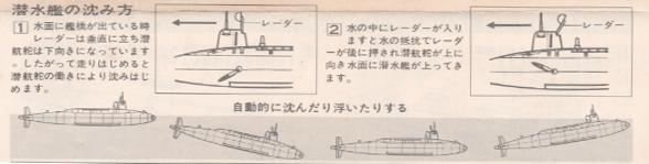 | 2代目。水中モーター使用可になった。 | 3代目。ミサイル、水中モーターが省略。 |