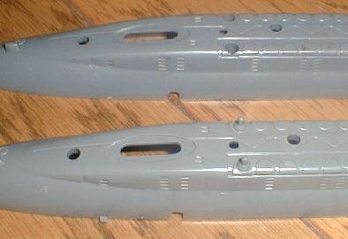 | 上:初,2代目。ポラリスミサイル発射口あり。 下:3代目。ポラリスミサイル一体モールド。 |