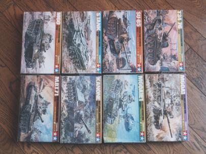 | 1970年代のタミヤの主力製品は何と言っても1/35の戦車です。ちょっと大人向けに、そしてお正月やクリスマス向けに1/21〜1/25のデラックス戦車シリーズがあり、入門編として¥100のワールドタンクシリーズがあった事は先に触れました。その¥100のワールドタンクシリーズはプロポーションに無理があったのとモーターライズの動作の確実性で問題があり、70年代の声を聞く前に生産停止となります。代わって颯爽と登場したのが1/48ミニタンクシリーズです。 時はまさに大阪万博の真っ只中、カラフルなパッケージデザインでいきなり6種類も同時に発売されたから大変です。その後1年ごとに新作が追加され最終的なラインナップは以下の様になりました。 1. T−34ボルガ 2. SU85ファーマー 3. Sバルカン 4. M60スーパーパットン 5. M60A1シャイアン 6. M60A1E1ビクター 7. カノン 8. MBT71 キットNo.1,2番は車体下部共通、3番は新規で4〜6が車体下部共通、7,8はそれぞれ新規の車体下部でした。つまり、大きく分けて5種類の車体下部があったことになります。 モーターだけで¥100するのにそれが付いて¥250ですからまさにリーズナブル、買ってきて速攻で作って走らせると、ゴムキャタピラでぐいぐい走りました。「間違い無く動く」という事はもはや必要条件になってました。当初はFA13モーター付で始まりましたが、マブチの仕様変更でFA13が製造停止になると、FA130仕様に変更になります。両者の違いはモーターの軸がプラスチック側から出ているか金属側から出ているかの違いだけなのですが、こだわりの世のおじさん達は血眼になってFA13版を捜しています。後期版のFA130版の方がミニ四駆のハイテクモーターが使えるので良さそうなものですが、そういうもんじゃないですよね。ちなみに箱絵のイラストはMBT71を除いて最後までFA13付の表記のまま変更がなかったので、後期のものは箱にはFA13付と書いてあるのに実際はFA130付ということになりましたが子供達にとっては大きな問題ではありませんでした。 足の長い電池押さえ金具はあまりコシが強くなくすぐへたりが来たり、スイッチの接点と言った意味でもこれがベストと言った感じではなかったのですが、後に白箱になって再販されたときには逆転スイッチ付の組み立てやすいものに改良されました。 8種類ある中でやはり一番人気があったのはSバルカンだと思います。スエーデンの新鋭戦車で無砲塔の斬新なデザインは魅力的でした。当研究室助手も一番に買ってます。そしてボックスアートのカッコ良さで言えばなんと言ってもこのビクターでしょう。ヘリとの共同作戦という構図が新鮮で、イロコイスはキットに入ってないとわかっていても確かめずにはいられませんでした。ちなみにこのビクターのボックスアートはあの中西立太画伯なんですね。最近ではアーマーモデリング誌で日本の軍装を連載なさっている方です。これは珍しく貴重です。 このシリーズは値上げを繰り返しながら最終的には¥450となって1979年にすべて製造停止となりますが、同年秋に白バックのパッケージとなって¥600で再スタートを切ります。この時T34とSU85はシリーズから脱落し、キットNo.1はMBT71となりました。さらに80年に入ってからMBT71は本体と同じく74式戦車として新しくキットNo.7と番号を変えました。この白箱版は現在でも安価に見かけることが出来ますのでお手持ちの方も多いと思います。 その後、1994年になって74式戦車とカノンが1/48リモコン戦車としてリニューアルされたのは記憶に新しいところですが(それでももう5年前なんですね)車体下部は新規に作られ、両者共通となりました。この時惜しむらくはデカールが廃止されステッカーになったこと。ミニ四駆時代とは言え、これだけは納得いきませんでした。でも良く走るよ〜。 |