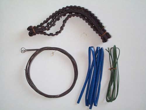 | 左下からワイヤー、ビニールパイプ、電源コード | 本体の木製部品分割 |